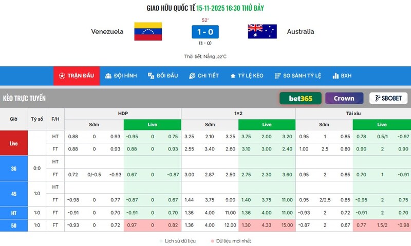 Điều mình thích nhất là tốc độ cập nhật realtime. Khi nhà cái thay đổi chỉ số, Bongdainfo cập nhật gần như ngay lập tức. Điều này giúp mình dễ bắt biến động và vào kèo live cực kỳ chuẩn. Chưa kể, bảng hiển thị rất rõ ràng, giúp những anh em mới tập soi kèo cũng không bị choáng ngợp.