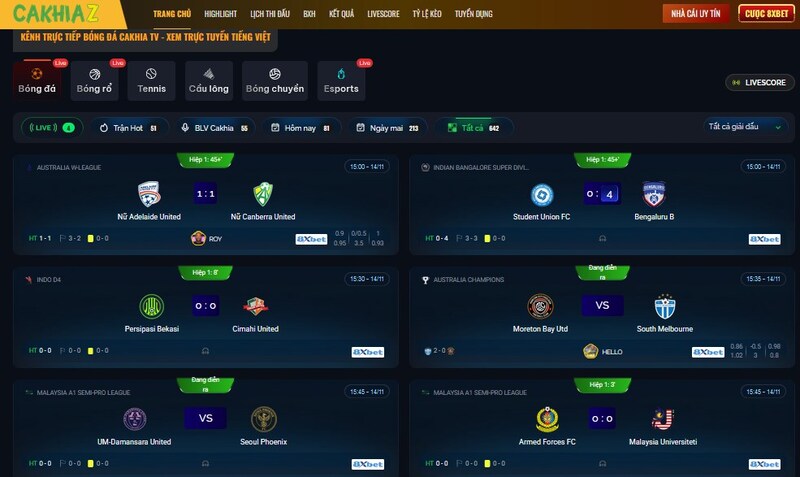 Ngay thời điểm đặt chân vào Cakhia Link, mình đã nhận ra đây không đơn giản là một trang web xem bóng đá trực tuyến. Nó giống như một “trạm trung tâm” nơi hội tụ mọi giải đấu lớn nhỏ trên thế giới. Từ những sân chơi hàng đầu châu Âu cho tới các giải cúp châu Á, các trận của tuyển Việt Nam, thậm chí đến những giải nhỏ ít người biết, tất cả đều có mặt đầy đủ.