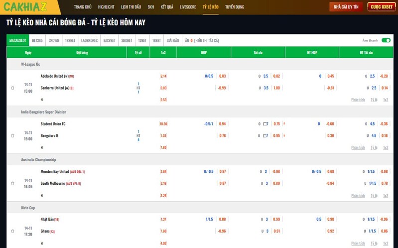 - Với tỷ lệ kèo, Cakhia Link tổng hợp kèo châu Á, châu Âu, tài xỉu, phạt góc và kèo tỷ số, kèm nhận định từ chuyên gia, hỗ trợ anh em phân tích và ra quyết định chuẩn xác.