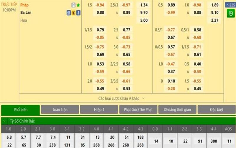 - Nếu đặt đội A và đội A thắng, bạn thắng kèo.